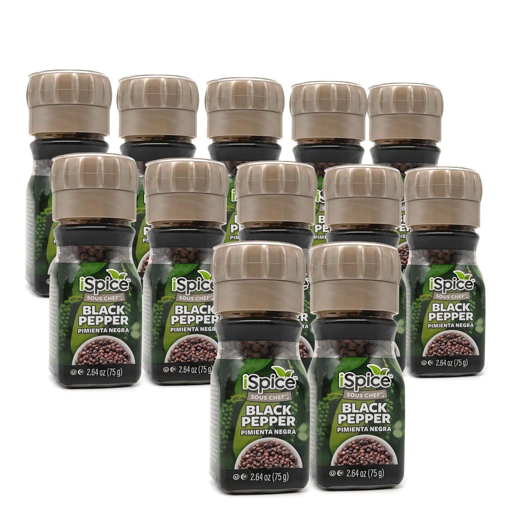 iSpice | 12 Pack of Black Pepper Grinder | PepperPulse | Mixed Spices & Seasonings Gift Set | Kosher