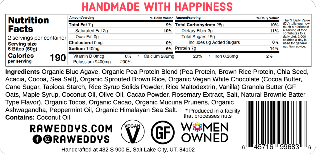 These gluten-free, dairy-free, soy-free, and plant-based treats are coated in creamy white chocolate with a refreshing hint of peppermint. Each bite is infused with brain-boosting ingredients like Ashwagandha and Mucuna, offering a tasty snack with added wellness benefits.