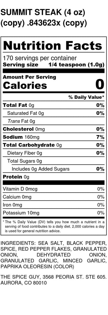 Summit County Steak & Veg- Our take on the famous Montreal Style Steak Seasoning. The big difference? We took out of all the fillers, the junk, and the things you really wouldn't want to put in your body and left all of the flavor that you've come to love. This one is great on steaks and hearty veggies like asparagus and zuchinni.